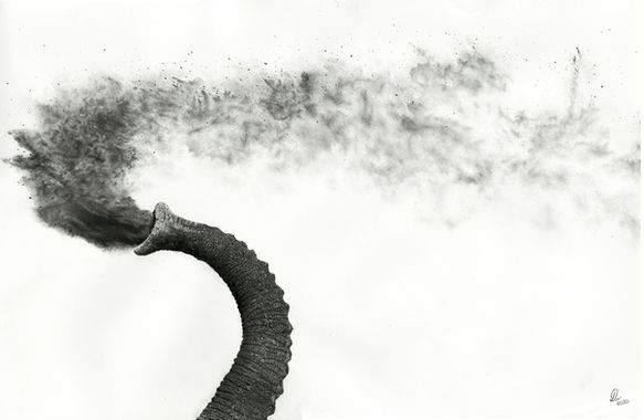 "Trunk" is a piece that is close to my heart, being born in South Africa, you are always close to the bush veld where you are around these spectacular animals and I wanted to capture that in a drawing that was more then just a portrait, I wanted to capture that wild wonder. Having been chased by an elephant once, I will forever have true respect for this beautiful animal.