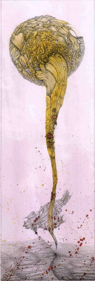 Fantastic and surreal silhouettes are developed in the twisted and chaotic sphere, feeding the furrow of the earth below and tending to the fertilization of the earth.