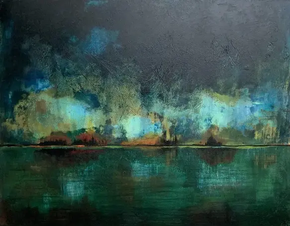 After more online courses, Rez began incorporating wax into her work. Following a series of cold wax with oil pieces, she developed her love for encaustic paint during a workshop and conference on ‘Painting with Fire’ in Ireland last October. Since then, she has focused on creating encaustic portraits and abstract landscapes.