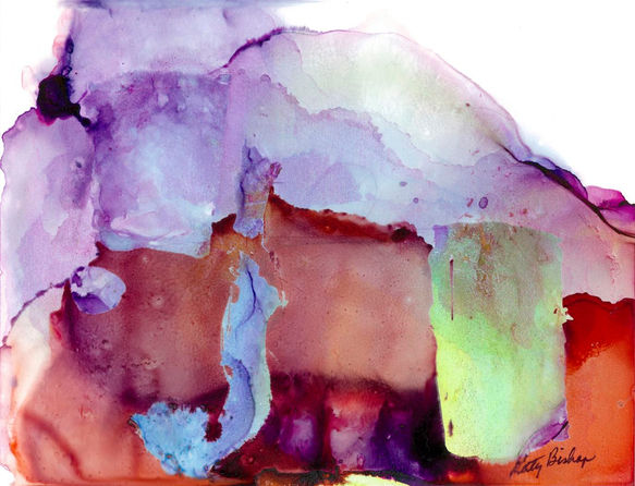 Katy had been working with acrylics and had ventured into encaustics. When a friend introduced her to alcohol inks, she found her expressive medium. Alcohol inks can be deep or transparent, they can be controlled and totally uncontrolled.