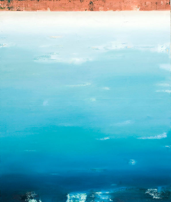 Some of the paintings, predominantly in shades of blue and blue-green, suggest width and depth through their subtle color gradients. The prevailing shades of blue give the viewer space, are not intrusive, but rather recede and thus draw the viewer into the painting.
