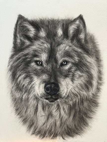 Wolves often evoke a sense of distance, but this one meets the viewer directly. In that gaze is a mixture of caution, strength, and unexpected intimacy. I used charcoal to bring out the layered texture of his fur and to draw the eye inward—toward that quiet intensity that speaks louder than words.
