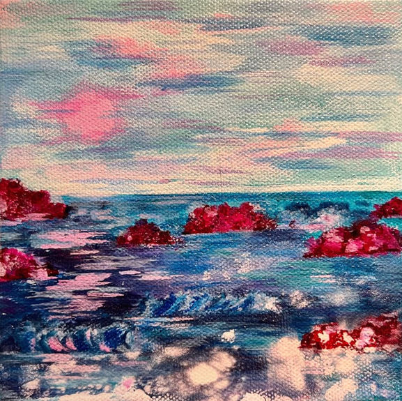 This piece combines my love of the ocean and bright colors. This is the first piece in my nUnderwater, featuring different aspects of oceanic life and portraiture. I have depicted a want to understand human's connection with nature, particularly the ocean, and the subsequent environmental impact we have on earth.